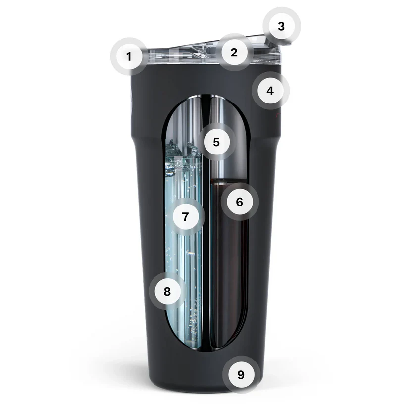 İçeceğiniz koyup kilitli kapağı kapadıktan sonra iki taraftaki içecekler asla birbirine karışmaz ve asla dışarı sızma yapmaz.
