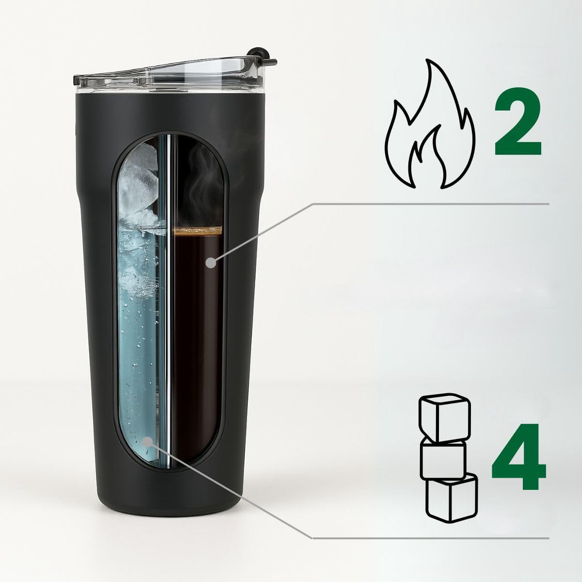 445 ml sıcak içecek tarafı, 445 ml soğuk içecek tarafı. Toplamda 890 ml ile kendinizi şımartın.
